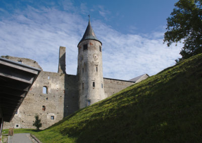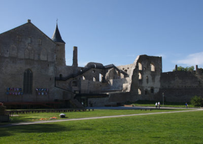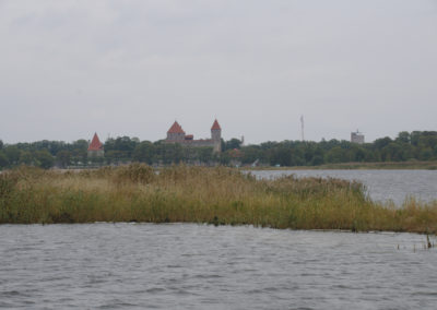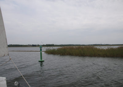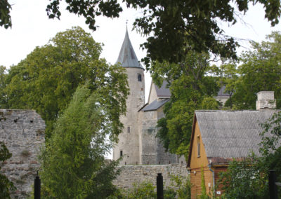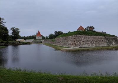 Nach dem Kranen legten wir uns in den nur 4 Seemeilen entfernten Stadthafen von Kuressaare um. Die Anfahrt führte durch Schilf mit wunderbarem Blick auf eine Burganlage, aber wir konnten die Idylle nur bedingt genießen. Der Grund schien uns jetzt jederzeit bedrohlich nah und der gelegentliche Flachwasseralarm strapazierte unsere Nerven. Natürlich wurden wir vom Hafenmeister gleich zur Rede gestellt, weshalb wir erst heute hier ankamen und was der Abstecher nach Roomassaare sollte. Wir erzählten von der Grundberührung und dem Kranen und zeigten ihm auf der Karte, wo wir unvermutet auf Fels gelaufen waren. Ob und wo wir wohl eine Kartenkorrektur einreichen könnten? Er sah uns verwundert an und erklärte freundlich, dass nur Touristen auf die Idee kämen, über so einen Bereich in Küstennähe zu fahren, da seien natürlich Felsen, Karte hin oder her! Nun, wieder was gelernt.