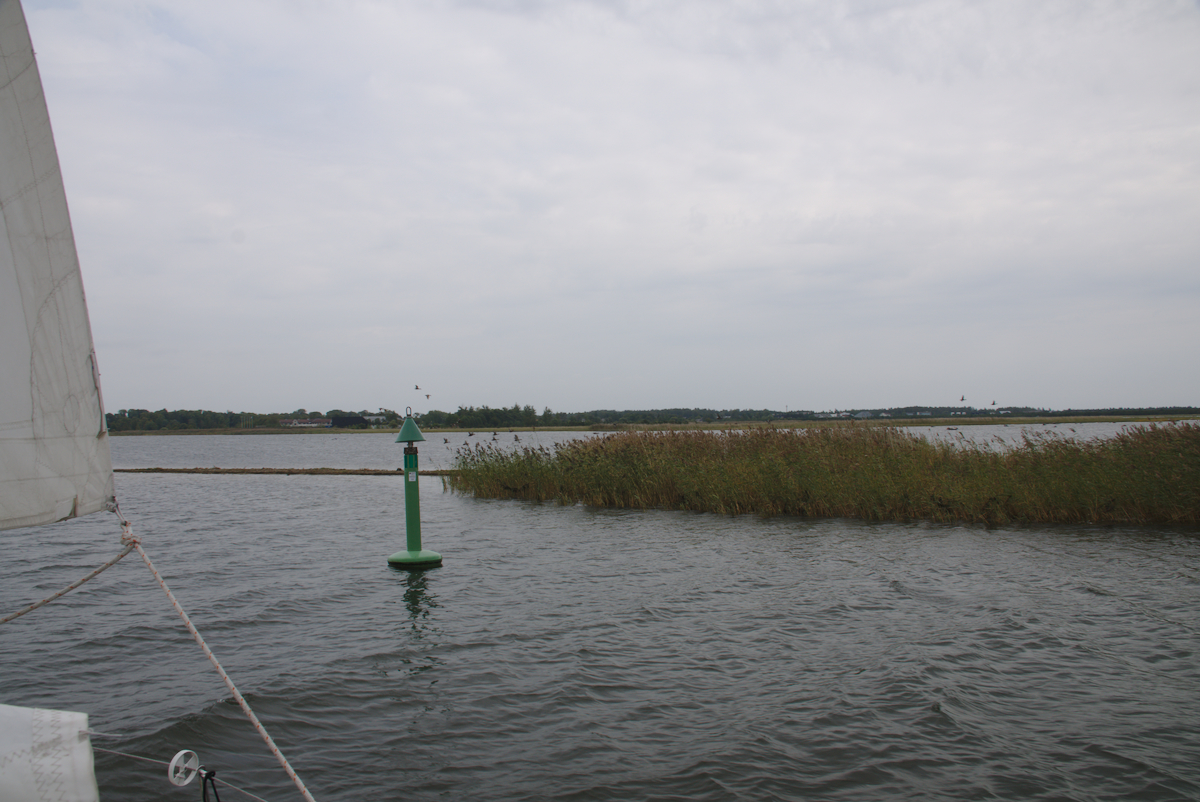 Miriam legte elegant ab und steuerte bei herrlichem Sonnenschein, kleiner Welle, gutem Wind und bester Laune in den Tag. Wir waren etwa eine Stunde unterwegs, noch in Sichtweite von Kõiguste und freuten uns über den wunderbaren Segeltag als plötzlich ein harter Schlag das Boot erzittern ließ. „Was tun?“, rief Miriam hilflos, als uns der nächste Schlag traf und in ein grässliches Schaben überging. Wir liefen auf Grund, aber warum? Wohin ausweichen? Christian warf geistesgegenwärtig die Segel auf, um unsere Fahrt zu bremsen. Wenig später waren wir frei, Luzie trieb mit schlagenden Segeln auf dem Wasser. Wir prüften schnell die Karten – keine Untiefen eingezeichnet, 5m tief sollte es hier mindestens sein. Wir starteten den Motor und holten die Segel ein, um uns in möglichst langsamer Fahrt und auf kürzester Strecke in noch tieferes Wasser zu bringen. Miriam prüfte unter Deck die Bilge und alle Schapps. Es war alles trocken. Die Pumpe beförderte etwas Wasser nach draußen, aber das könnten auch ein paar große Wellen der letzten windigen Fahrt gewesen sein oder Regenwasser.