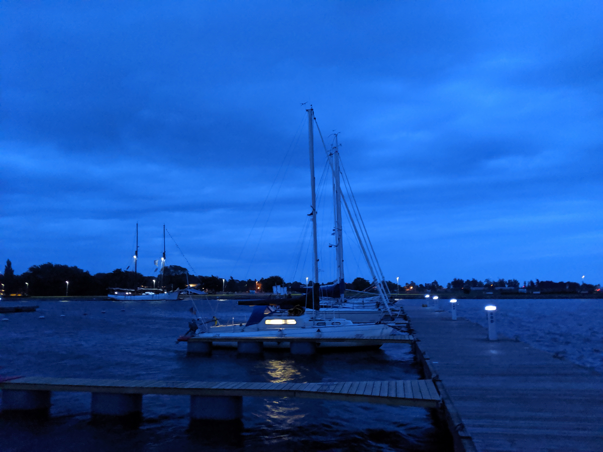 Unser nächster Zielort war der Hafen von Kuivastu, knapp 34 Seemeilen entfernt. Es wehte ein kräftiger Wind und wir waren größtenteils mit gerefften Segeln unterwegs. Miriam war nach der Einfahrt in den Hafen mit den Nerven etwas am Ende, weil man direkt an einem Fähranleger vorbei musste und die Fähren für ihren Geschmack viel zu schnell und viel zu nah unterwegs waren. Während wir Luzie für die Nacht vorbereiteten und Abendessen kochten kam ein Stegnachbar herüber und lud uns auf ein Kaltgetränk auf sein Boot ein. Wir verbrachten einen netten Abend auf der wunderschönen Svan „Albert“ mit ihrem Besitzer Joe und seiner Freundin. Sie beschworen uns, dass wir den kleinen Hafen Kõiguste keinesfalls verpassen sollten, er sei so schön gelegen, mit besonders nettem deutschsprachigem Hafenmeister, der den besten Räucherfisch verkaufe.