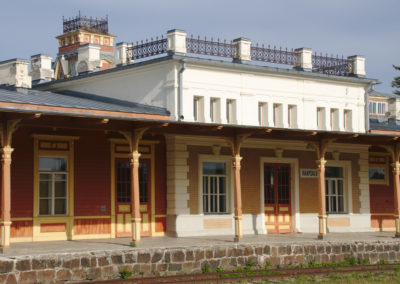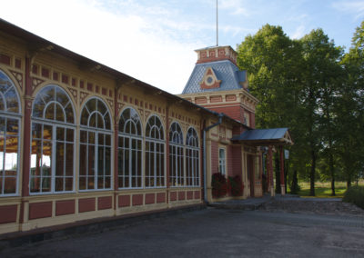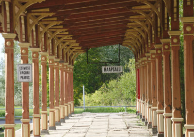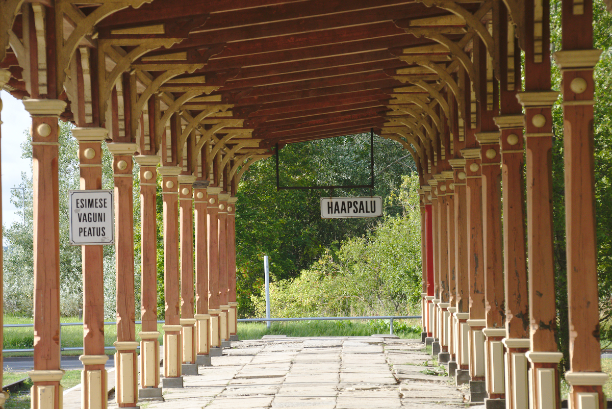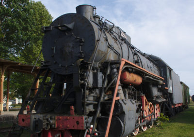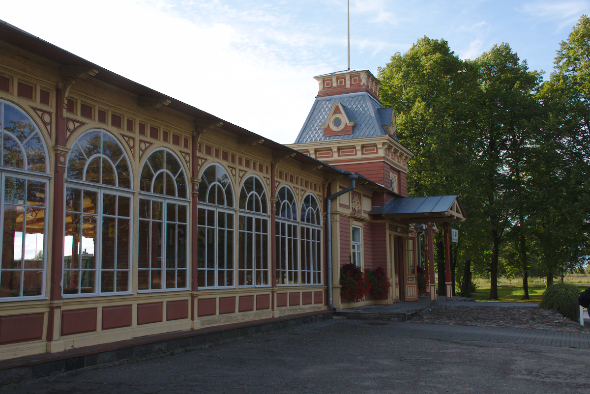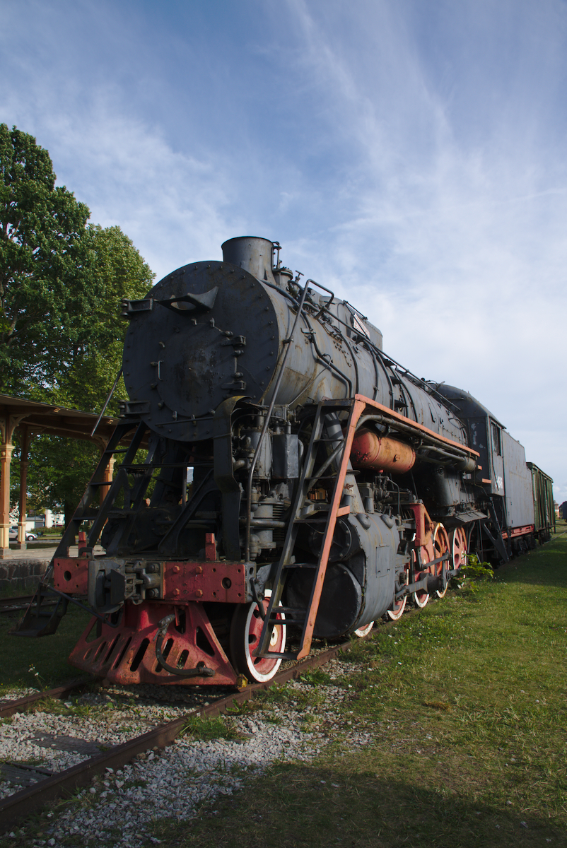 Einige Zeit nach uns legten auch unsere neuen Kuchenbekanntschaften an und wir zogen gemeinsam los, um das Städtchen und die Burganlage zu erkunden. Während die anderen beiden das modern wirkende Burgmuseum besichtigten, begannen wir eine etwas chaotische Baumarktexkursion. Auf einem Sperrholzhaufen in Dirhami hatten wir nämlich das perfekte Holzstück gefunden, um unsere gebrochene Zackenleiste zu reparieren. Nun wollten wir dringend die richtigen Schrauben dazu besorgen, um die Zackenleiste zu montieren und unseren „dritten Steuermann“ endlich wieder in Betrieb nehmen zu können. Es war ein heißer Tag und unsere Schraubensuche artete zu einer Wanderung in entlegene Industriegebiete aus. Nebenbei entdeckten wir zum Glück auch einige wunderschöne Ecken von Haapsalu. Wir freuten uns über entzückende Gässchen und schöne Gärten und nach der beeindruckenden Burganlage begeisterte uns vor allem das Freilicht-Eisenbahnmuseum. Etwas geplättet von den weiten Wegen beendeten wir den Tag weiterhin schraubenlos bei Nudeln mit Tomatensoße. Da uns die Herren von nebenan offensichtlich noch nicht vergeben hatten, verzogen wir uns leise unter Deck.