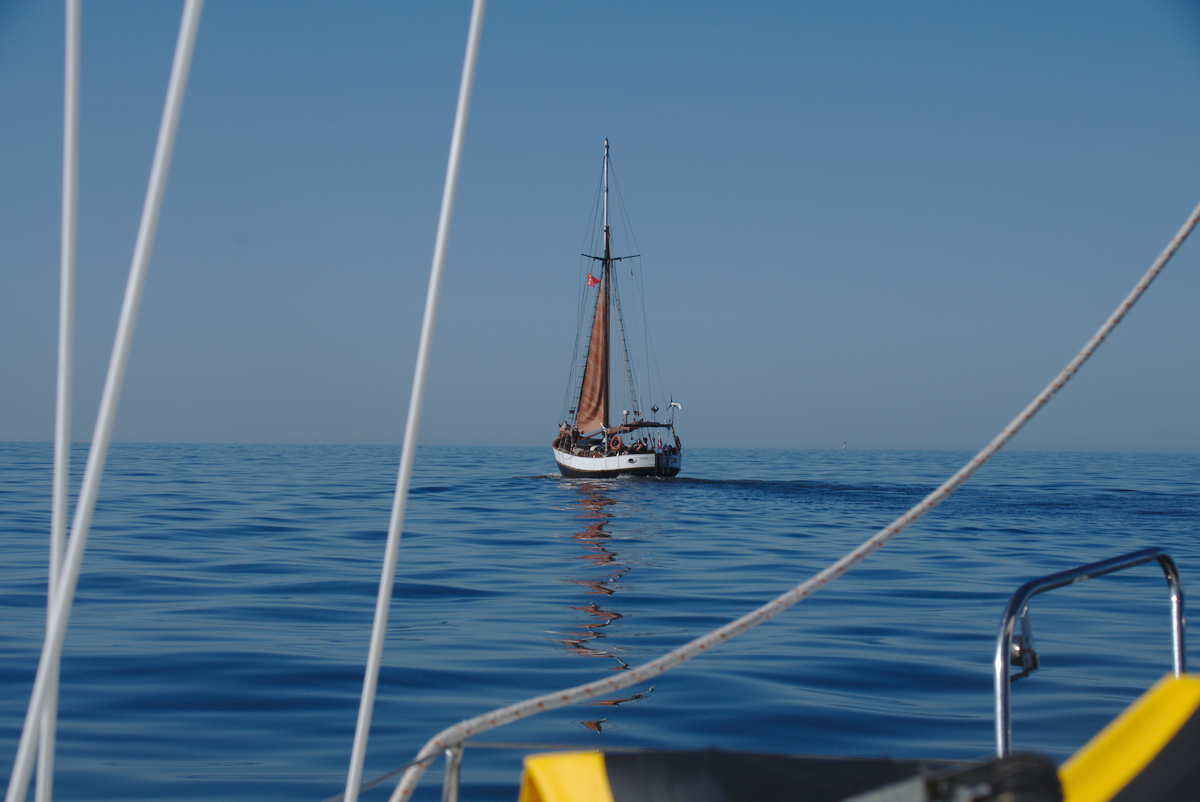Wir brachen um 8 Uhr auf und setzten hoffnungsvoll Segel, gaben den Versuch jedoch eine halbe Stunde später schon wieder auf. Es war einfach zu wenig Wind und so blieb es auch bis nachmittags. Mit einer Mischung aus Besorgnis und Neid beobachteten wir die drei anderen Segelboote, die mit uns aufgebrochen waren. Während wir auf direktem Weg ins tiefe Wasser fuhren und damit einen größeren Umweg in Kauf nahmen, fuhren sie auf direktem Weg nach Gotland, nah an der Küste Estlands vorbei. Entweder sie waren äußerst ortskundig oder sie besaßen einen Senkkiel und ungetrübtes Vertrauen in die Estnischen Seekarten. Nun, was bedeuteten schon ein paar Stunden kürzere Reisezeit, wenn man mehr als einen ganzen Tag unterwegs war, trösteten wir uns. Es war ein wunderbares Gefühl, so durch den Tag zu fahren und zu wissen, dass man nichts mehr anderes vor hatte heute. Keinen Zielhafen, nur segeln.