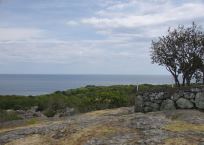 Der Nachmittag und Abend verging wie im Flug. Christian kletterte auf den Mast und zog statt des verlorenen Falls eine längere Leine ein, die wir hoffentlich beim nächsten Spinaker-Experiment besser sichern können. Wir machten eine kleine Erkundungstour über die Felsen der Insel, aber beeindruckende Regenwolken trieben uns bald wieder zurück zum Boot. Wir wissen deshalb nur, dass es auf der anderen Seite der Insel deutlich einsamere Buchten gibt und überall verteilt schöne Grillplätze, dass der kleine Laden bei der Jugendherberge und dem Restaurant am Gastliegersteg nur zuckrige Getränke und Eis, aber kein frisches Gemüse hat, das wir uns so gewünscht hätten, und dass beeindruckende Tiere auf der Insel wohnen müssen, die riesige Fladen hinterlassen.