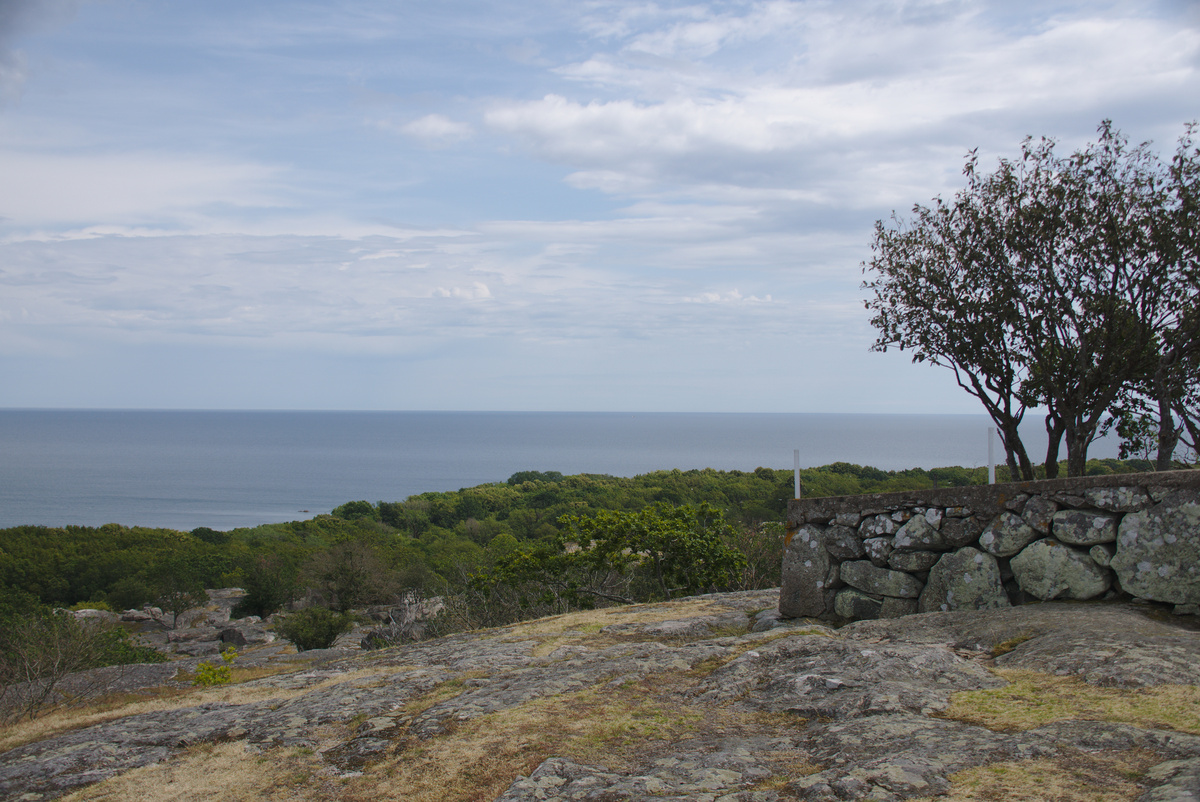 Seit vorgestern, Christians Geburtstag, sind wir endlich in Schweden! Beide zum ersten Mal, übrigens. Nach einem kleinen Geburtstagsfrüstück sind wir gegen 9 Uhr von Allinge auf Bornholm aufgebrochen. Das aufregendste an der Überfahrt nach Schweden war das Durchqueren einer breiten Fahrrinne, auf der große Containerschiffe beeindruckend schnell in beide Richtungen verkehren. Kreuzen darf man die Fahrrinne nur senkrecht. Der Wind schlief kurz vor unserer Einfahrt in die Fahrrinne ein, sodass wir den Außenborder anschalten mussten, um manövrierfähig zu bleiben. Der Weg durch die Rinne dauerte für uns über eine Stunde. Es zogen sechs große Frachtschiffe an uns vorüber, für die wir jeweils ausweichende Schlenker fuhren. Eine Zeit lang konnten wir hinter der Fahrrinne noch segeln, aber abends war so wenig Wind, dass wir erneut nur mit dem Außenbordmotor vorankamen. Ohne den stabilisierenden Winddruck wurden wir von den Wellen ordentlich durchgeschaukelt. Der Außenborder heulte bei jeder allzu steilen Welle unangenehm auf. Wir mussten mehrmals unterwegs Benzin aus unseren Reserve-Kanistern nachtanken und bei einer dieser Aktionen verloren wir den Tankdeckel unseres Motors. Er versank sehr schnell und nun ziert eine mit Gummiband gespannte Gefriertüte die Motorhaube. Wir hoffen, dass wir unterwegs in einer größeren Stadt Ersatz bekommen.