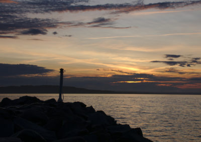 Nachmittags füllte sich der Hafen schnell mit Wochenendgästen. Die Nacht verbrachten wir als mittleres Boot eines Dreierpäckchens: am Steg lag nun die Yacht des freundlichen Ehepaares (deren Nachbar-Yacht hatte morgens gekonnt abgelegt) und an Luzie hatte abends eine schwedische Familie mit einer deutlich größeren Yacht angelegt. Die waren ebenfalls freundlich, hatten aber alle einen erstaunlich festen Tritt, unter dem unsere Luzie sehr schwankte und knarzte.