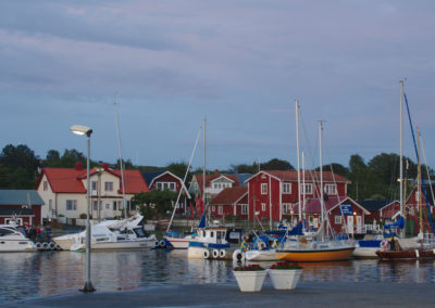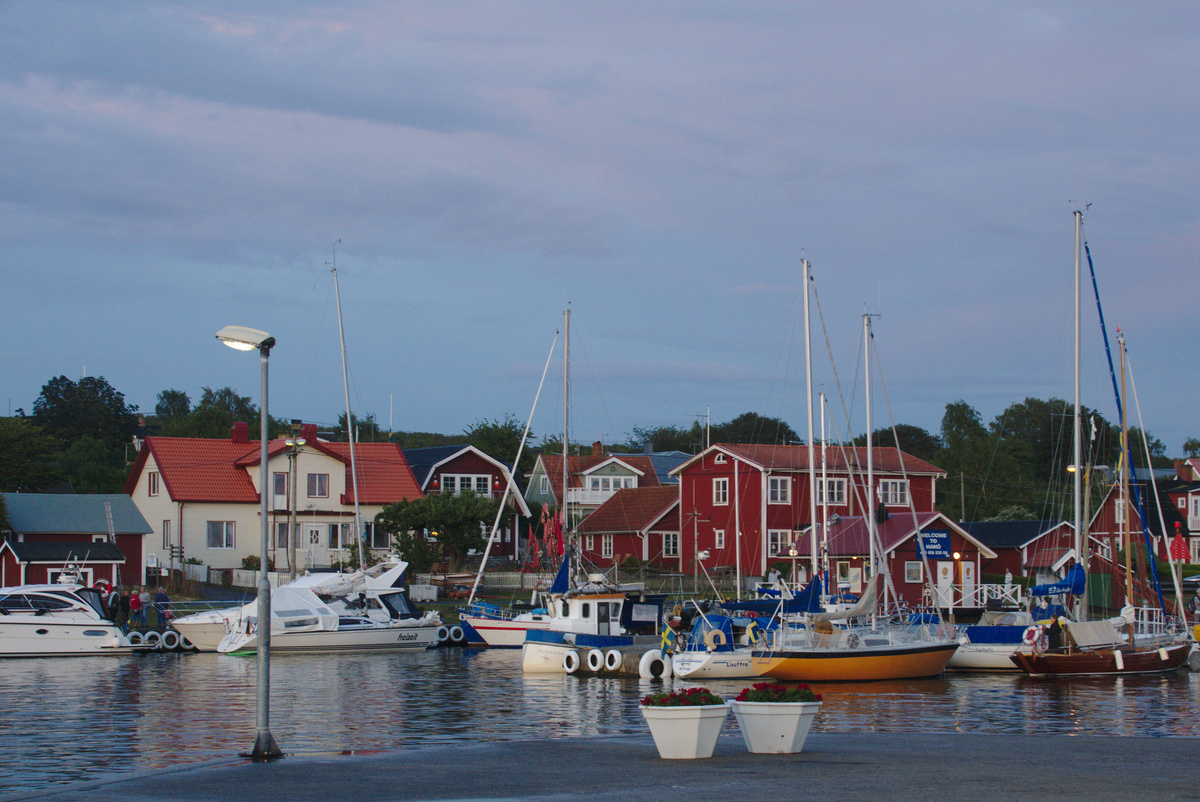 Gegen 20 Uhr kamen wir endlich, einigermaßen gequält im Hafen Hanö an. Hanö ist eine kleine schwedische Insel mit etwa 40 Einwohnern. Der Yachthafen bietet laut Beschreibung ebenso vielen Yachten Platz. Er war schon gut gefüllt und wir legten zum ersten Mal längsseits an einem anderen Segelschiff an. Die Eigner, ein freundliches Ehepaar, unterbrachen ihr Abendessen, um uns mit den Leinen zu helfen; es war eins der einfachsten Anlegemanöver, die wir bisher hatten. Unser Nachbarschiff war an einer schwedischen Segelyacht festgemacht, die ihrerseits am Steg vertäut war. Es fühlt sich etwas merkwürdig an, über fremde Schiffe klettern zu müssen, um an Land zu kommen. Dafür ist es nett, direkte Nachbarn zu haben.