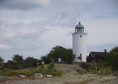 Wir verbrachten den Vormittag mit ausschlafen und Bootsarbeit: Spülen, Wasser auffüllen, Batterien laden, Deck putzen, leck gewordene Schraublöcher abdichten, lose Scharniere festziehen. Dann durchstreiften wir Hanö auf einigen der im Reiseführer beschworenen idyllischen Fußpfaden, bis es anfing zu regnen. Es ist eine abwechslungsreiche Insel, mit Wäldchen, Weideflächen und Felsen. Am höchsten Punkt steht ein Leuchtturm, der 1906 gebaut wurde und noch immer das hellste Feuer der Ostsee haben soll.