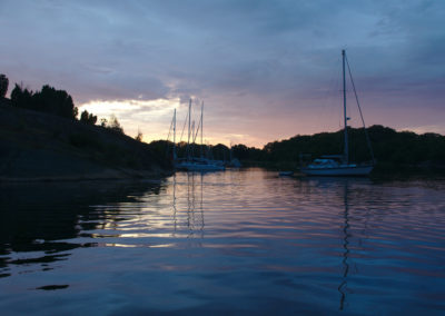 Der letzte Eintrag ist genau eine Woche her; es scheint aber eine Ewigkeit dazwischen zu liegen. Gerade sitzen wir in Decken gehüllt im Cockpit und blicken über das Heck unseres Bootes auf spiegelglattes Wasser, felsige Inselchen und bewaldete Ufer. Wir haben an der Ostküste der Insel Tjärö festgemacht. Das erste Mal liegen wir damit an Felsen. Zum ersten Mal ist der Anker im Einsatz. Es gibt viele erste Male zur Zeit.