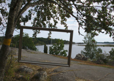 Am nächsten Morgen verließ ein Großteil der Schiffe geradezu fluchtartig den Hafen, um das Wochenende voll auszukosten. So machten es auch unsere schwedischen Nachbarn und wir konnten gegen 10 Uhr ganz gemütlich lossegeln. Wir wollten weiter nach Nordosten und hatten uns als ersten möglicherweise-Schären-Ankerort-mit-Hafen-Alternative die Insel Tjärö ausgeguckt. Es war so leichter Wind, dass wir beschlossen, probeweise (und natürlich zum ersten Mal) unseren Spinnaker zu setzen. Der Spinnaker ist ein großes Leichtwindsegel, bei uns leuchtend blau und gelb. Wenn es geklappt hätte, könntet ihr hier nun wahrscheinlich ein Foto bewundern. Leider klappte es nicht. Das Segel blähte sich nicht in die erwartete Richtung und falsch gesetzt rieb es an den Wanten, weshalb wir es schnell wieder bargen. Dabei rutschte uns das Fall durch (das Seil, mit dem man das Segel zur Mastspitze hochzieht). Es lässt sich nur wieder einfädeln, indem man auf den Mast klettert; unsere Spinnaker-Experimente hatten sich für diese Fahrt also erledigt.